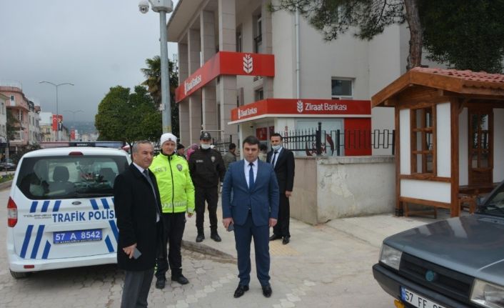 İçişleri Bakanlığı, korona virüsü önlemleri kapsamında 65 yaş ve üstü ile kronik rahatsızlığı bulunanların sokağa çıkmasını yasaklamasının ardından Gerze Kaymakamlığı İlçe Emniyet Müdürlüğüne bağlı birimler birçok kişinin yasağa uymayarak dışarıya çıktığının görülmesi üzerine uygulama yaptı. Özellikle maaşlarını almaya gelen vatandaşlara polis ekipleri kimlik kontrolü yaparken, yaşları 65 yaş ve üstü çıkan kişilerin tespit edilerek haklarında tutanak tutulduktan sonra evlerine gönderildiği öğrenildi. Gerze Kaymakamlığına vekâlet etmekte olan Dikmen Kaymakamı Suat Hatam konuyla alakalı olarak bakanlığın genelgesi doğrultusunda 65 yaş üzeri vatandaşların uyarıldığını bu konuda herkesin hassas davranmasını belirtti.