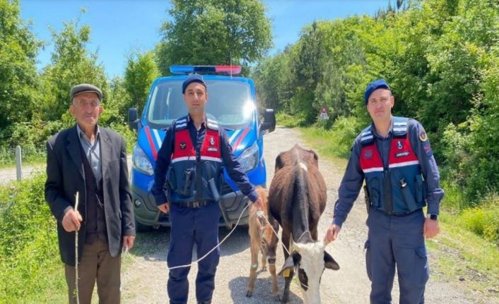 Sinop’ta bir köylünün kaybolan inek ve buzağısı, jandarma tarafından 7 kilometre uzakta bulundu. Hayvanlarına 5 gün sonra kavuşan vatandaş, jandarmaya teşekkür etti.