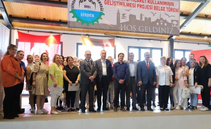 Programda son olarak söz alan SİNDER Başkanı Yılmaz Öz ise “Sinop İş İnsanları Derneği SİNDER olarak ilk projemizi üyelerimizin ve bu alanda faaliyet göstermeyi planlayan tüm halkımıza katkı sağlayacak ’SİNDER E-Ticaret Kullanımının Geliştirilmesi Eğitim Projesi’ 7 Haziran 2022 tarihinde Sivil Toplumla İlişkiler Müdürlüğü kanalıyla, İçişleri Bakanlığına sunulmuş olup 5 Ekim 2022 tarihinde bakanlık ve valilik tarafından onaylanmıştır. Bu proje kapsamında ilimizde 140 kişiye haftalık 24 saat olmak üzere Ticaret Müdürlüğünün organizesi ile çalışmalar tamamlanmıştır. Kurs bitiminde kursa katılanlara Katılım Belgelerini vermek için bir araya gelmiş bulunmaktayız” diye konuştu.