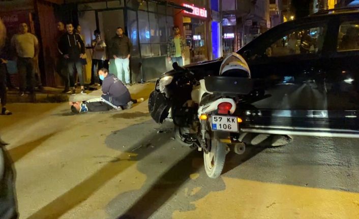 Sinop’ta meydana gelen trafik kazasında motosiklet cipe saplandı. Kazada motosiklet sürücüsü ve arkasındaki kişi yaralandı.