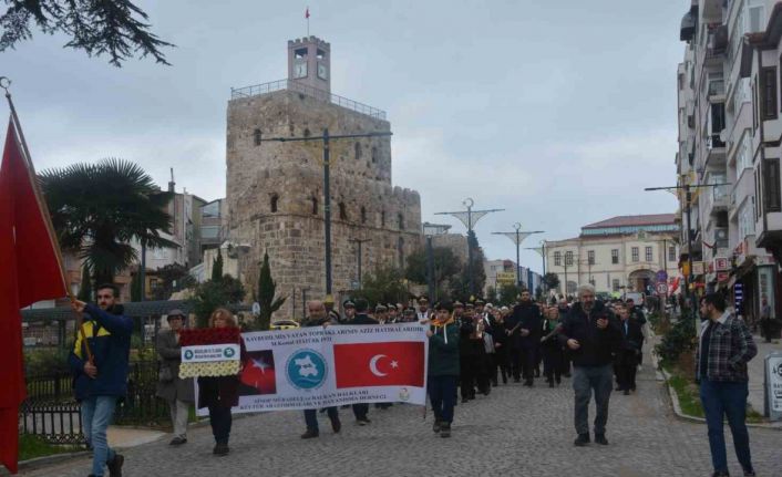 Aral’ın konuşması ardından, programa katılanlar Belediye Bandosu eşliğinde Bülent Ecevit Caddesi’ne yürüdü. Burada mübadele göçünde hayatını kaybedenler için din görevlisi tarafından dualar edildi. Daha sonra Dernek Başkanı Aral protokol üyeleriyle birlikte denize çelenk ve karanfil bıraktı.