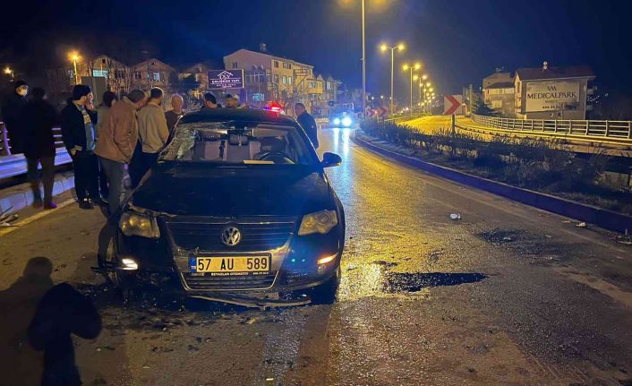 Kaza, Fatih Caddesi Sinop-Samsun karayolu üzerinde 22.00 saatlerinde meydana geldi. Edinilen bilgiye göre, 57 AU 589 plakalı otomobil ile seyir halinde olan S.E., virajı döndüğü esnada direksiyon hakimiyetini kaybederek yolun sol kısmında bulunan refüjdeki aydınlatma direğine çarptı. Çarpmanın etkisiyle savrulan araçta şoför S.E. ile yanında bulunan S.D. yaralandı. Yaralılar 112 sağlık ekiplerince Sinop Atatürk Devlet Hastanesine kaldırıldı.