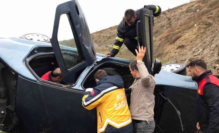 Kazanın bildirilmesi üzerine olay yerine gelen jandarma, sağlık ve itfaiye personeli yaptıkları ortak çalışmayla araçta sıkışan sürücüyü kurtardı.
