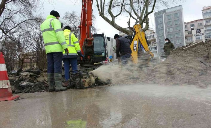 Kent Meydanı projesi kapsamında Uğur Mumcu Meydanında yapılan çalışmalar esnasında yolun altından geçen su borusu kırıldı. Tüm şehre su taşıyan borunun kırılmasıyla kent genelinde su kesintisi meydana geldi. Sinop Belediyesi ekipleri, kırılan boruyu onarmak için çalışmalara başladı. Boru çevresinde biriken suyu motorla tahliye ederken, kepçe ile de borunun etrafı temizlenmeye başladı.