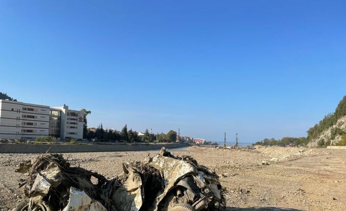 Sinop’un Ayancık ilçesinde 11 Ağustos’ta yaşanan sel nedeniyle Köprübaşı mevkiinde kalan hurdaya dönmüş bir otomobil dikkat çekiyor.