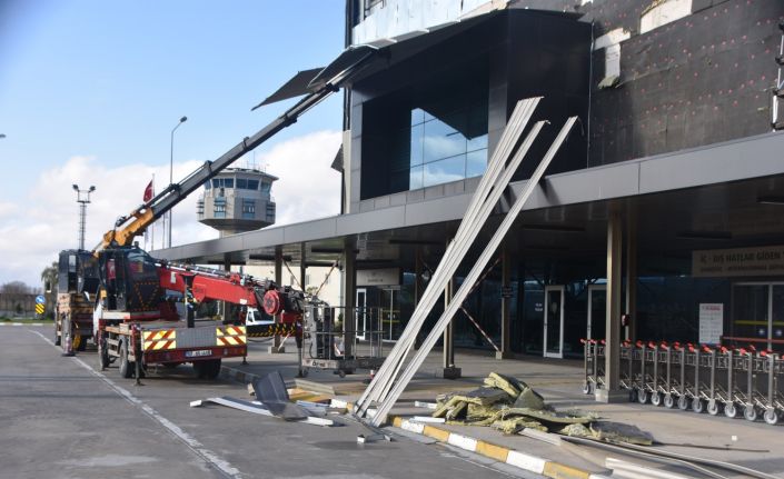 Geçen hafta yaşanan fırtınada zarar gören Sinop Havalimanı terminal binasında onarım çalışmaları devam ediyor.