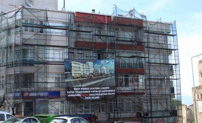 Sinop Kent Meydanı Projesi’nin tamamlanmasının ardından, tarihi surların ve Saat Kulesi’nin karşısında kalan 21 binada dış cephe iyileştirme çalışmaları başladı. Proje tamamlandığında caddedeki binalar kentin dokusuna uyumlu halde tek renk olacak.