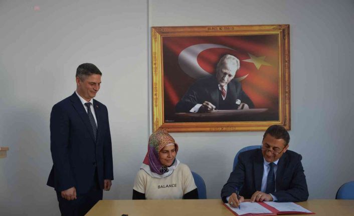 Toplantı sonrası Vali Karaömeroğlu, Tarım İl Müdürü Fatih Önlem ve çiftçiler hibe programı için imza attı.