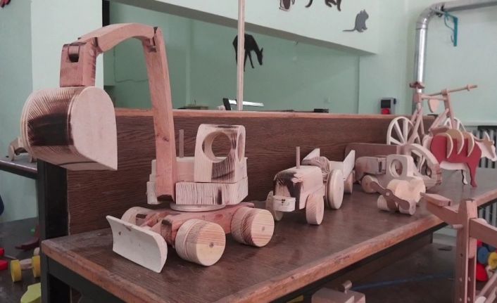 Sinop’un Ayancık ilçesinde, Ayancık Meslek Yüksekokulu ile Ayancık Halk Eğitim Merkezi iş birliğinde ile açılan ‘Ahşap Oyuncak Atölyesi’nde kursiyerler ahşaptan oyuncaklar yapıyor.