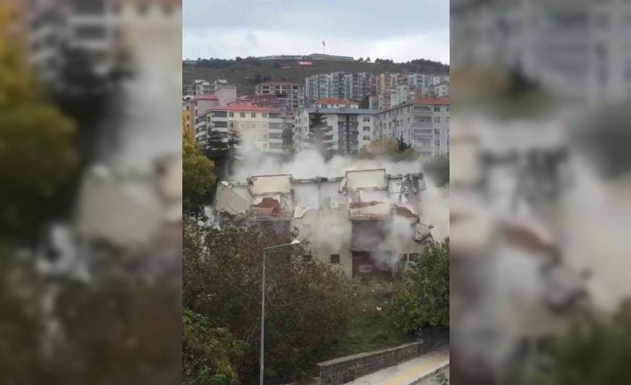 Sinop’ta kırıcı yardımıyla yıkımına başlanan eski 112 Komuta Merkezi binası, çalışmalar esnasında önce yan yattı, bir süre sonra kendiliğinden devrildi. Binanın yıkılma anı ise cep telefonu kamerasına yansıdı.