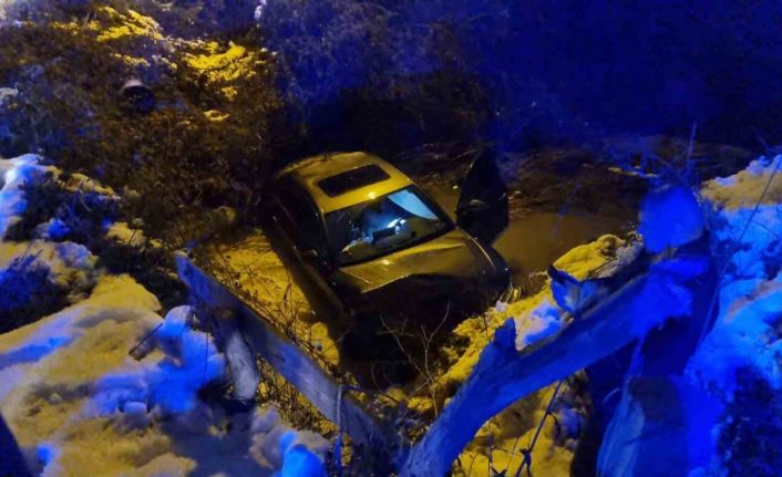 Sinop’ta buzlanan yolda otomobil dereye uçtu: 1 yaralı