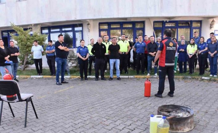 İl Emniyet Müdürlüğü bahçesinde itfaiye ekipleri tarafından emniyet personelinin katılımıyla gerçekleştirilen tatbikatta, ilk müdahale süreci, yangın tüpü kullanımı ve yangına yaklaşma teknikleri uygulamalı olarak gösterildi. İtfaiye ekipleri, yangına nasıl müdahale edilmesi gerektiği, yangın söndürme cihazlarının doğru ve etkin kullanımı hakkında detaylı bilgiler verdi.