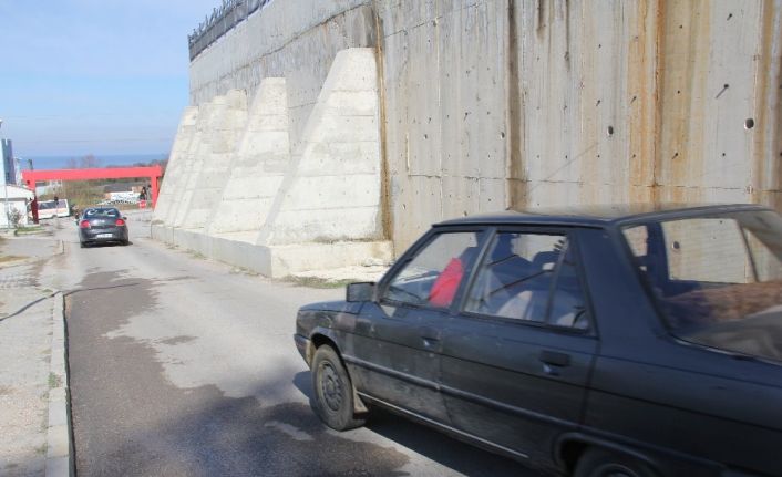 Sinop Atatürk Devlet Hastanesi’nin yanından geçen yolun üzerinde, hastaneyi çevreleyen duvarı destekleyen bir beton blok bulunuyor. Başlangıçta iki aracın yan yana geçebileceği büyüklükte olan yol beton bloğun bir araçlık yer kaplamasıyla o bölüme gelindiğinde tek aracın geçebileceği bir genişliğe daralıyor. Yol üzerinde bir uyarı levhasının bulunmaması tehlikeye davetiye çıkartıyor.