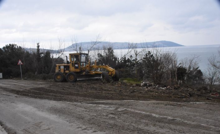 Sinop’ta heyelan nedeniyle çöken yol belediye ekiplerince onarıldı