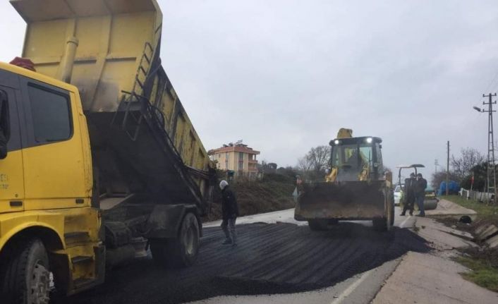 Sinop’ta heyelan nedeniyle Çiftlik köyü mevkisinde çökme oluşan yol onarıldı.