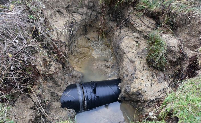 Sinop’ta heyelan nedeniyle su borusu kırıldı. Belediye ekipleri onarım çalışması başlattı.