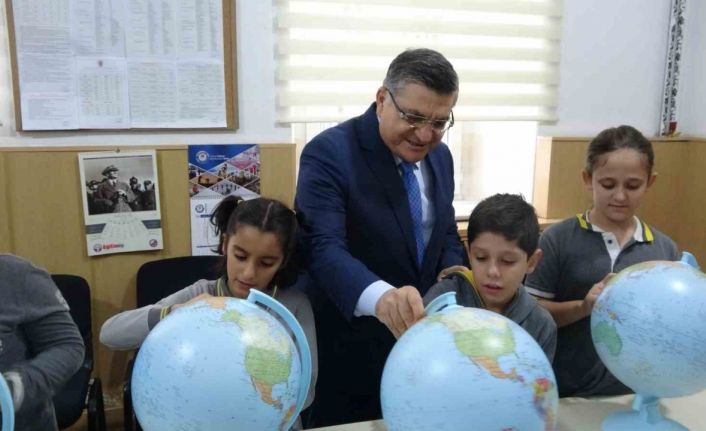 Sinop Valisi Dr. Mustafa Özarslan, Sinop İstiklal İlkokulu öğrencilerine ’model küre’ dağıttı.