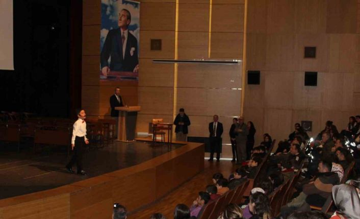 Programın açılışında konuşan İl Milli Eğitim Müdürü Ercan Yıldız, milletleri kahraman kılan en önemli unsurun düştüğü yerden kalkma mücadelesi olduğunu söyledi. Yıldız, “1. Dünya Savaşı’nın akabinde, itilaf devletleri denilen batının tek dişi kalmış canavarları tarafından boğulmaya çalışan Türk milleti, Misak-i Milli sınırları içerisinde vatanın bölünmez bütünlüğünü korumak için daha önce dünyada eşi benzeri görülmemiş kahramanlıklarla dolu ve çok cepheli bir Kurtuluş mücadelesine girişmiştir. Gazi Mustafa Kemal Atatürk’ün, 19 Mayıs 1919 günü Samsun’a çıkışıyla ilk adımının atıldığı Kurtuluş Savaşı, aziz milletimizin kendisine biçilmeye çalışılan sömürge elbisesini parçalayıp bir paçavra gibi fırlattığı, küresel emperyalist planları darmadağın ettiği şanlı direniş kutlu kıyam ve şahlanışın adıdır” dedi.