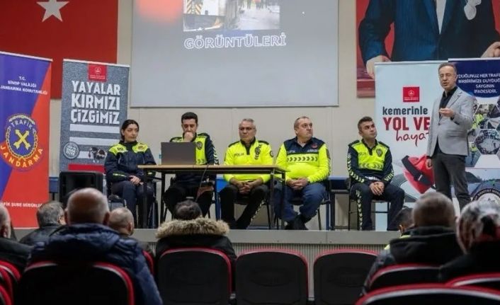 Sinop’ta okul servis taşımacılığında güvenliğin artırılması amacıyla servis şoförleri ve rehber personele yönelik trafik güvenliği eğitimi düzenlendi.