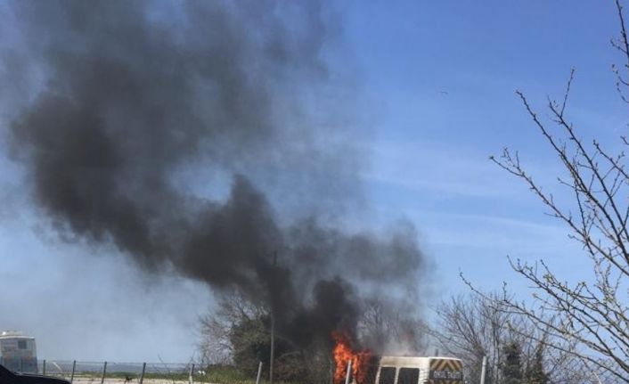 Sinop’ta seyir halindeki okul servis minibüsü, aniden çıkan elektrik arızasından dolayı bir anda alev aldı.