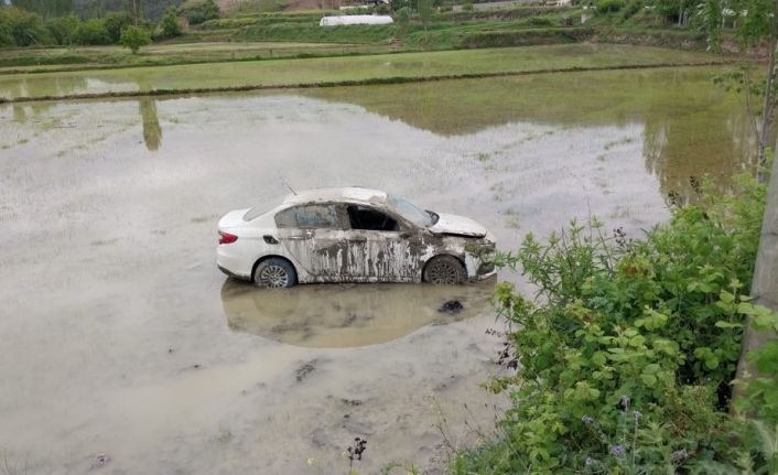 Sinop’un Boyabat ilçesinde virajı alamayan otomobil su dolu çeltik tarlasına uçtu, kazada sürücü yaralandı.