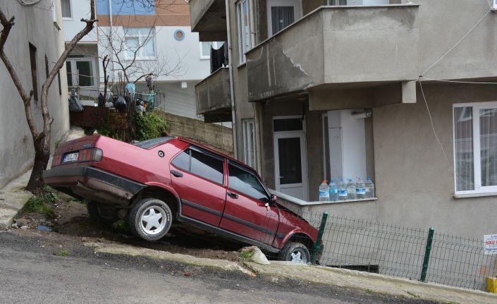Sinop’ta park halindeyken kendiliğinden hareket eden otomobil bir evin balkonuna girdi. Kazada ölen ya da yaralanan olmazken araç evin balkonunda asılı kaldı.