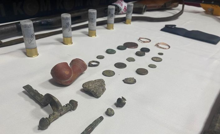 Edinilen bilgiye göre, Sinop İl Emniyet Müdürlüğü Kaçakçılık ve Organize Suçlarla Mücadele (KOM) Şubesi tarafından, Dikmen’e bağlı bir köyde 1 şüphelinin tarihi eser aradığı ve bulduğu eşyaları sakladığı değerlendirilen eve baskın düzenlendi. Adreste yapılan incelemelerde, Roma ve Bizans dönemlerine ait olduğu değerlendirilen 13 çeşitli ebatlarda sikke, 1 yüzük, 7 adet çeşitli ebatlarda obje, 2 küpe, 1 tarihi kama, 1 el dedektörü, 1 ruhsatsiz av tüfeği ele geçirildi. Olayla ilgili 1 şüpheli gözaltına alınarak hakkında yasal işlem başlatıldı.