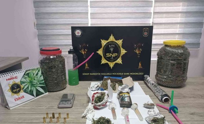 Konu ile ilgili Sinop İl Emniyet Müdürlüğünden yapılan açıklamada, “İl Emniyet Müdürlüğümüzce il merkezi ve ilçelerimizde uyuşturucu madde ticareti ve kullanımını önlemeye yönelik yapılan çalışmalarda; 15 Eylül günü il merkezinde iki araç ve 4 (dört) şahıs üzerinde yapılan kontrollerde ve akabinde iki ev aramasında toplamda; 797,28 gram esrar maddesi, 0,48 gram metamfetamin maddesi, 2,18 gram sentetik kannabinoid (bonzai) maddesi ve 8 adet 7x65 tabanca fişeği, 1 adet hassas terazi, 2 adet uyuşturucu kullanmaya yarar aparat, 1 adet rulo halinde alüminyum folyo ve 3 adet cam payp ele geçirilmiş, şahıslar hakkında adli mercilerin talimatları doğrultusunda ‘uyuşturucu madde ticareti, uyuşturucu madde kullanmak-bulundurmak ve 6136 SKM’ suçundan yasal işlem başlatılmıştır” denildi.