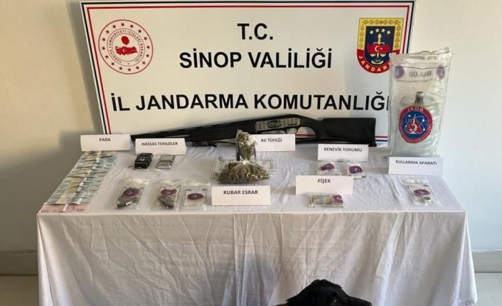 Sinop İl Jandarma Komutanlığı tarafından Türkeli ilçesinde uyuşturucu madde imal ve ticaretini yaptığı tespit edilen şüpheli 1 şahsa yönelik yapılan operasyonda, 484 gram kubar esrar, kenevir tohumu, hassas terazi, uyuşturucu madde kullanma aparatı, ruhsatsız av tüfeği ve fişeği ele geçirildi. Olayla ilgili 1 kişi gözaltına alınarak hakkında yasal işlem başlatıldı.
