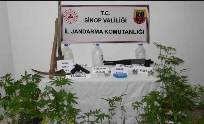 Sinop İl Jandarma Komutanlığı tarafından Boyabat ilçesinde yasadışı kenevir ekimi yaptığı tespit edilen şüpheli 2 şahsa yönelik yapılan operasyonda, 23 kök kenevir bitkisi ele geçirildi. Ayrıca şahıslardan 1 adet av tüfeği ve 1 adet tabanca elde edildi.