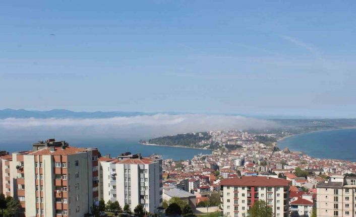 Sinop’ta denizden gelerek şehrin üzerinden geçip daha sonra da kaybolan sis bulutları, seyrine doyum olmayan manzara oluşturdu.