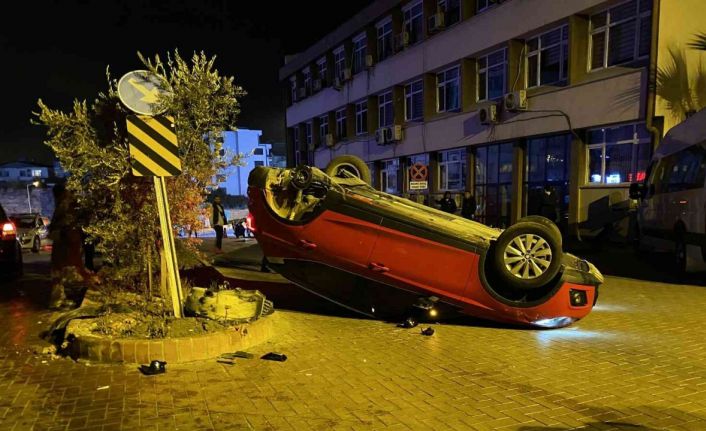 Takla atan araçtaki sürücüyü emniyet kemeri kurtardı