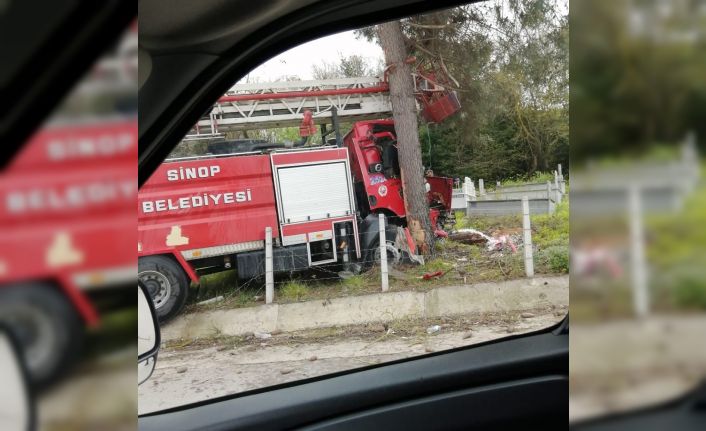 Sinop’ta tatbikata giderken kontrolden çıkıp, ağaca çarpan itfaiye aracının sürücüsü yaralandı.