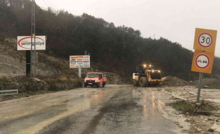 Sabah saatlerinde ilçe girişinde meydana gelen heyelanda yol kısa süreliğine ulaşıma kapanırken, ekiplerin çalışması sonucu araç trafiğine kontrollü şekilde izin veriliyor.