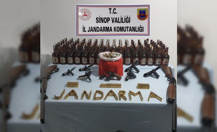 Sinop Türkeli İlçe Jandarma Komutanlığı ekiplerince yapılan operasyonda, çok sayıda sahte içki ve ruhsatsız silahlar ele geçirildi.