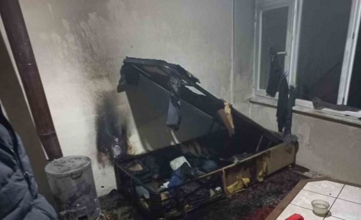 Ekiplerin kısa sürede müdahalesi ile söndürülen yangın sonucu evde hasar oluştu.