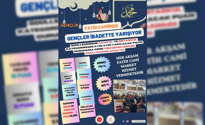 Oruç, cemaatle namaz, teravih namazı gibi ibadetlerin puanlanacağı yarışmada, yarışmanın birincisine 750 lira, ikincisine 600 lira ve üçüncüsüne 500 lira ödüllendirileceği belirtilirken, ayrıca yarışmaya tüm gençlere de hediyeler verilecek.