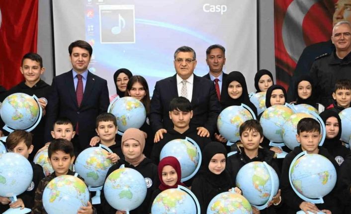 Türkeli ilçesinde öğrencilere coğrafya ve sosyal bilgiler eğitimine destek olmak amacıyla model küre dağıtıldı.