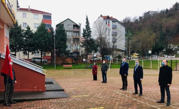 Türkeli İlçe Milli Eğitim Müdürü Recep Anar ve şube müdürleri, Türkeli Anadolu Lisesi’nde düzenlenen bayrak törenine katıldı. Okullarda yönetici ve personeller evlerde ise öğretmen, öğrenci ve veliler İstiklal Marşına eşlik etti.