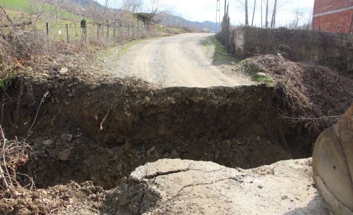 Sinop’un Türkeli ilçesine bağlı Düzler köyü yolunda bulunan menfezde tahribat yaşanması nedeniyle yol çöktü.