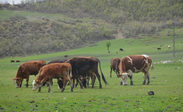 Şırnak’ta 4 ay boyunca ahırlarda bekletilen büyükbaş hayvanlar baharın gelişiyle yaylaya çıkmaya başladı. Meraya çıkarılan hayvanlar yeşilliklerin içinde baharın keyfini yaşıyor.
