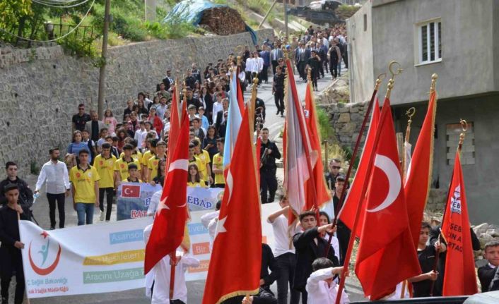 Şırnak’ın Beytüşşebap ilçesinde 19 Mayıs Atatürk’ü Anma, Gençlik ve Spor Bayramı, yüzlerce öğrencinin bayrak ve flamalarla yaptığı yürüyüşle kutlandı.