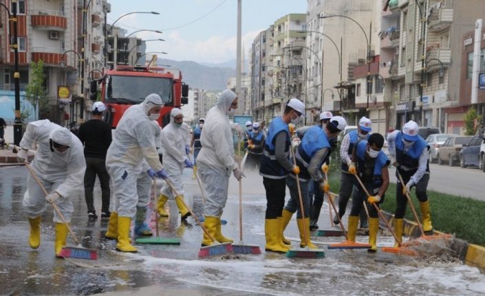 Cizre’de korona virüs salgınına karşı önlem olarak başlatılan çalışmayla Orhan Doğan Caddesi, Nusaybin Caddesi, Belediye Caddesi, İdil Caddesi ve Hastane Caddesi ile sokaklar köpüklü suyla yıkandı. Çalışmalar kapsamında yaklaşık 10 kilometrelik bir alan yıkanmış oldu. Diğer taraftan ilçe genelinde oluşturulan özel ilaçlama ekipleri tarafından kamuya açık alanlar, evler ve iş yerlerinin dezenfekte edilmesine devam ediliyor.