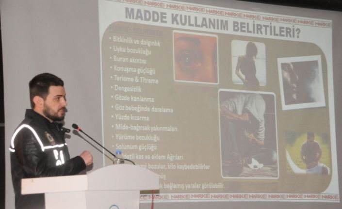 Şırnak’ın Cizre İlçe Emniyet Müdürlüğü Narkotik Suçlarla Mücadele Grup Amirliği ekipleri tarafından Şırnak Üniversitesi Cizre Meslek Yüksekokulu öğrenci ve öğretim görevlilerine Türkiye Uyuşturucu ve Uyuşturucu Bağımlılığı İzleme Merkezi (TUBİM) sunumu kapsamında uyuşturucunun zararları ve uyuşturucuyla mücadele konusunda seminer verildi.