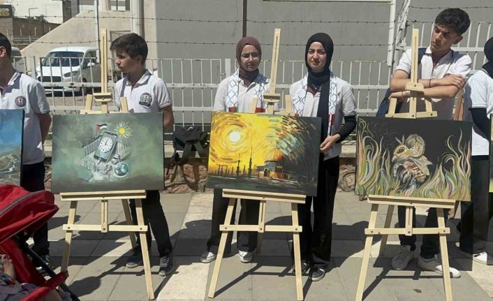 Şırnak’ta lise öğrencileri, Gazze’de yaşanan insanlık dramına dikkat çekmek için yaptıkları resimleri sergiledi.