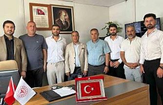 Ziyaret sonunda Sağlık-Sen heyeti tarafından Başhekim Karaaslan’a çeşitli hediyeler takdim edildi.