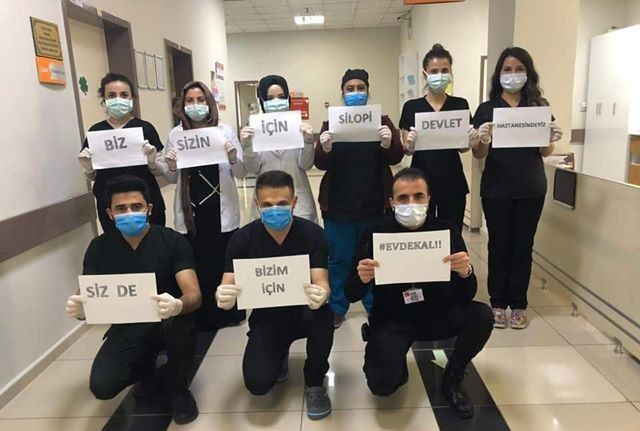 Ülke genelinde korona virüsünün yayılmaması için çeşitli önlemler alınırken hastanelerde de yoğun mesai yapılıyor. Doktorlar ve sağlık çalışanları da korona virüsünün yayılmasını önlemek için sürekli uyarılarda bulunuyor. Korona virüsünden 4 kişinin hayatını kaybetmesinin ardından Silopi Devlet Hastanesindeki hemşire ve personeller halka çağrıda bulundu. Hastanedeki doktor ve hemşireler, "Biz sizin için Silopi Devlet Hastanesindeyiz, siz de bizim için evde kalın" çağrısında bulundu.