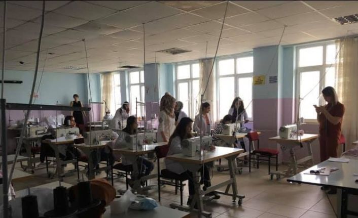 Şırnak’ın Silopi ilçesinde lise öğrencileri korona virüsle mücadele kapsamında maske üretimi yapıyor.