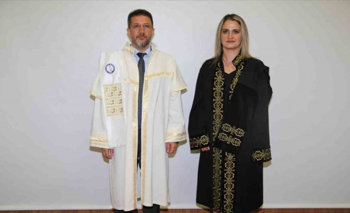 Rektör Alkış, profesör ünvanına hak kazanmış olan Prof. Dr. İbrahim Baz’ a ve doçentlik unvanına hak kazanmış Doç. Dr. Ülfet Erbaş’a cübbelerini giydirerek tebrik etti.