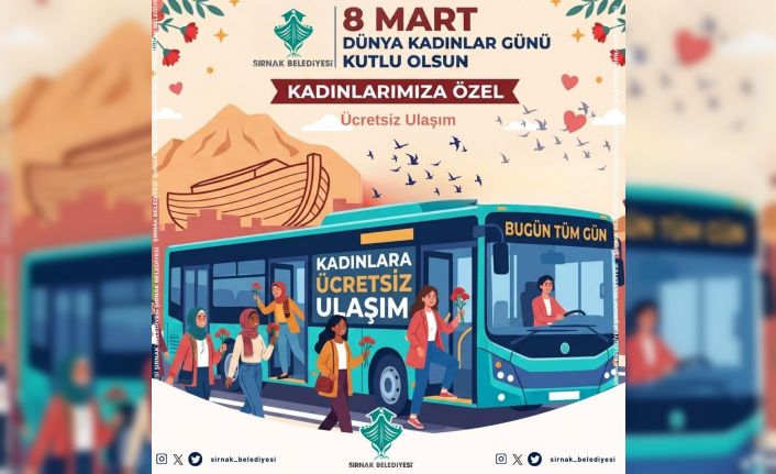 Şırnak Belediyesi, 8 Mart Dünya Kadınlar Günü dolayısıyla belediye bünyesinde hizmet veren toplu ulaşım araçlarının kadınlara ücretsiz olacağını duyurdu.
